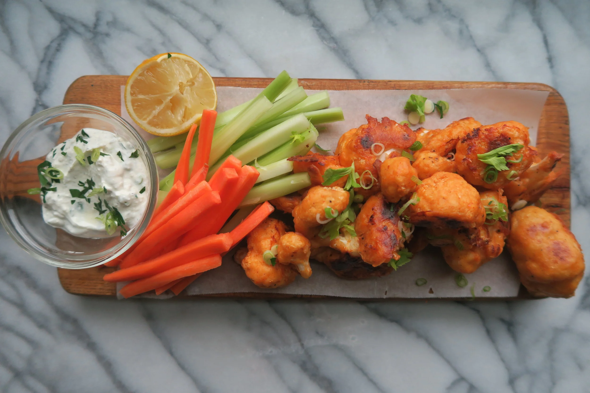 *Hint: For a healthier dipping sauce than the regular blue cheese dressing, add 1 cup Greek yogurt, a squeeze of lemon juice, pinch of salt and any mix of fresh herbs you like (dill, parsley, scallions, or chives) or mash and toss in a few chunks of blue cheese for that traditional taste.