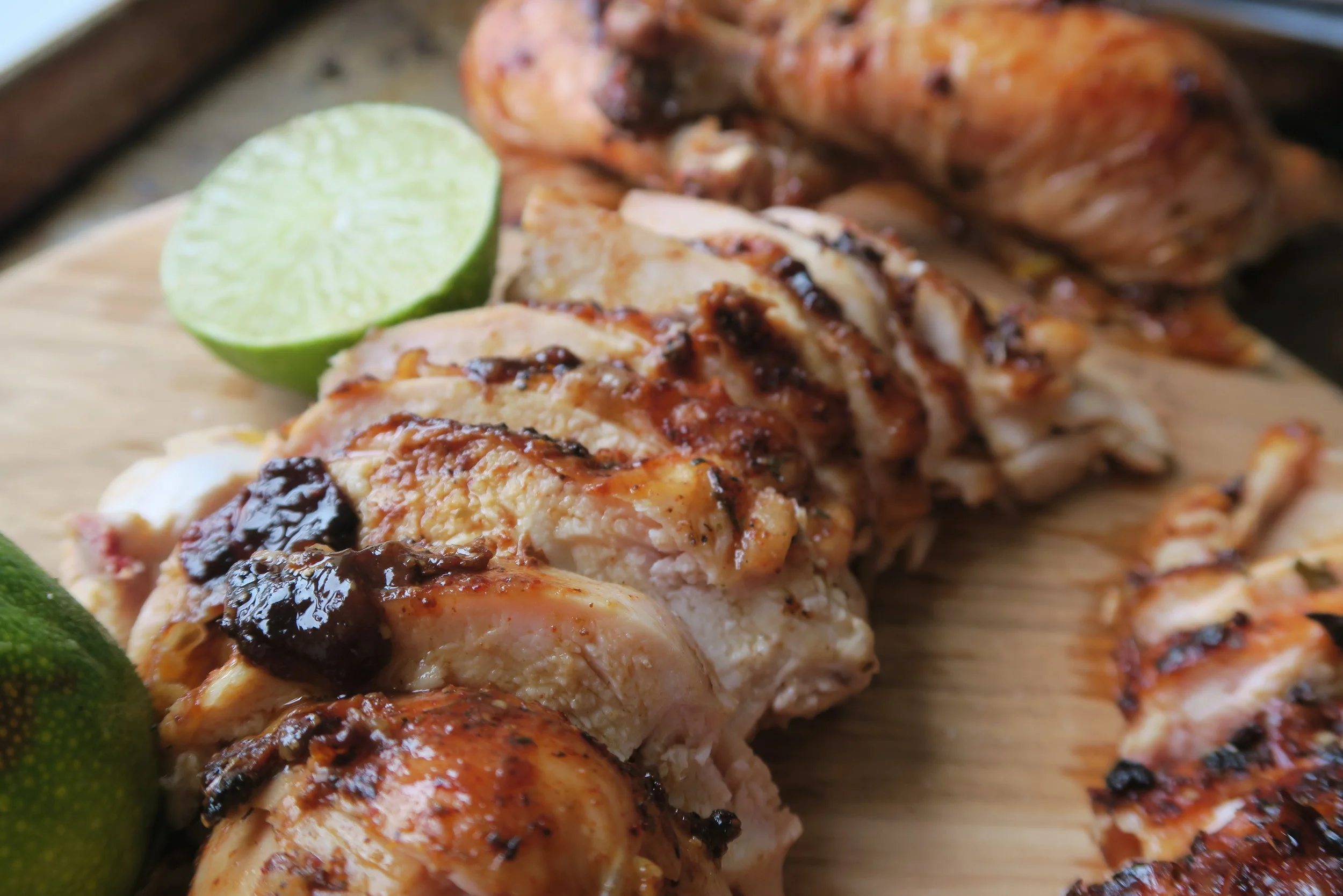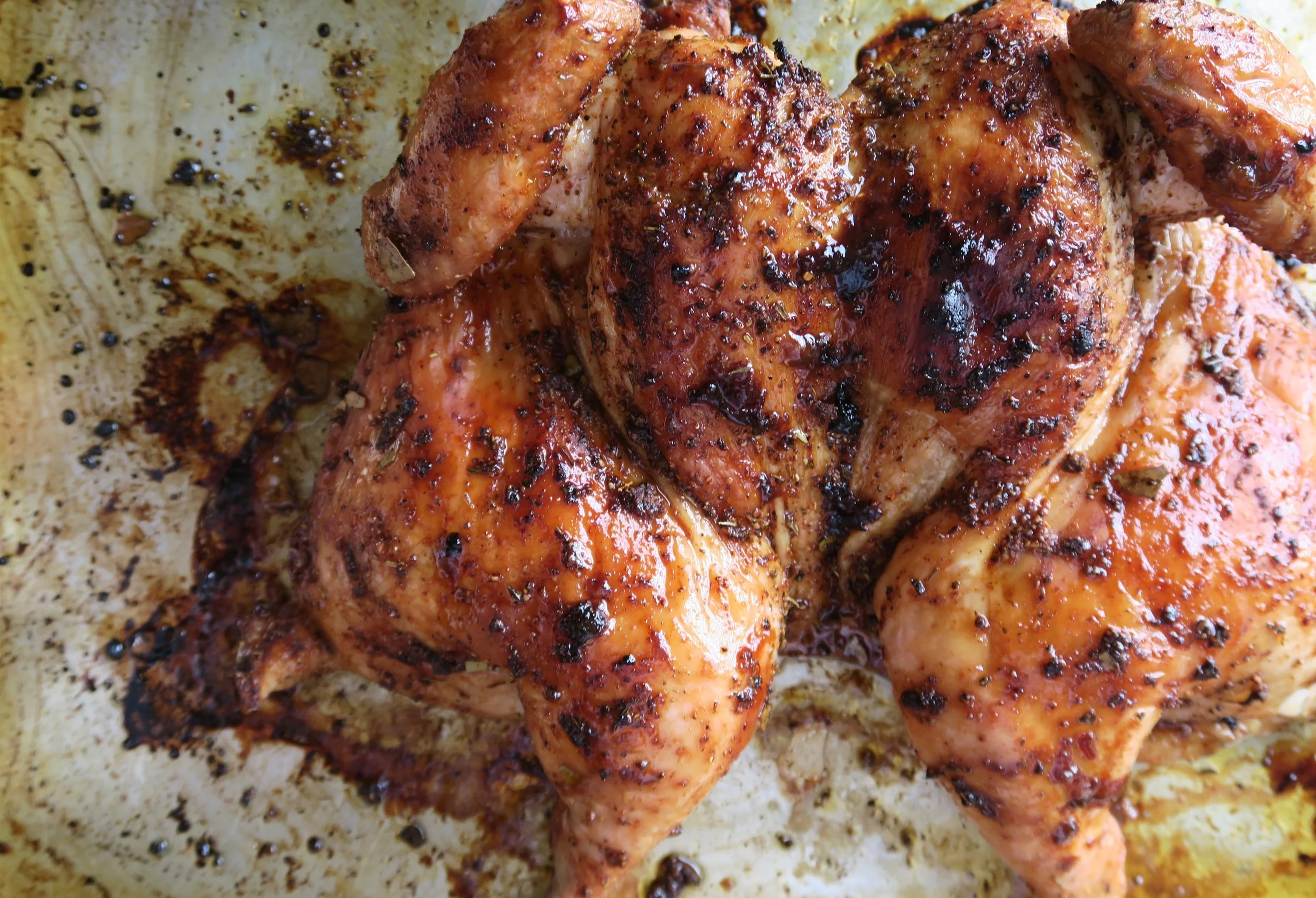 Dressing and cooking chicken should be part of every home cook's arsenal. That can be surprisingly hard to master, especially when you're roasting the bird whole. Breasts can dry out if cooked past 150 F and legs aren't fully cooked until 175 F. When you're roasting at high temperature in an oven, there's already an uneven heat distribution happening as the heat rises. So for roasting whole, the solution? Spatchcocking. It sounds like some medieval torture method but actually, it's a brilliant but simple method of preparing and cooking the whole bird. By spatchocking, or butterflying the bird by cutting its backbone so it lays flat, the legs are exposed to higher heat and is finished right when the breasts are finished which is precisely the result you want when it comes to juicy tender meat that keeps in a little amount of fat (aka: taste). It also gives you a much crispier skin with less cooking time (around 45 mins). It's brilliant. Some of the best roast chicken I've eaten in my life has had a nice simple spicy rub and a squeeze of lime at the end. I'm thinking Zankou Chicken in LA or Peruvian style chicken with spices like dry mustard, oregano, and smoked paprika, brown sugar, and salt. And that's it, just spices. No butter or oil or roasting spit. As long as it's laid right, you'll get a tender crispy chicken every time. Make sure you have a pair of kitchen shears. Now let's get started. I'm getting hungry. There are a few methods I'm leaving out which you can do but it's not necessary. Some people like to remove the backbone, I just butterfly it and call it a day. After you rub the spice mix into the bird, a great blend of hot and sweet, it's ready to go in the oven but if you have the time, let it sit in the fridge uncovered for a few hours so it absorbs the dry marinade and allows moisture to come out. I've tried a few different recipes but Melissa Clark's formula from the New York Times is my absolute favorite so I had to share. Enjoy.