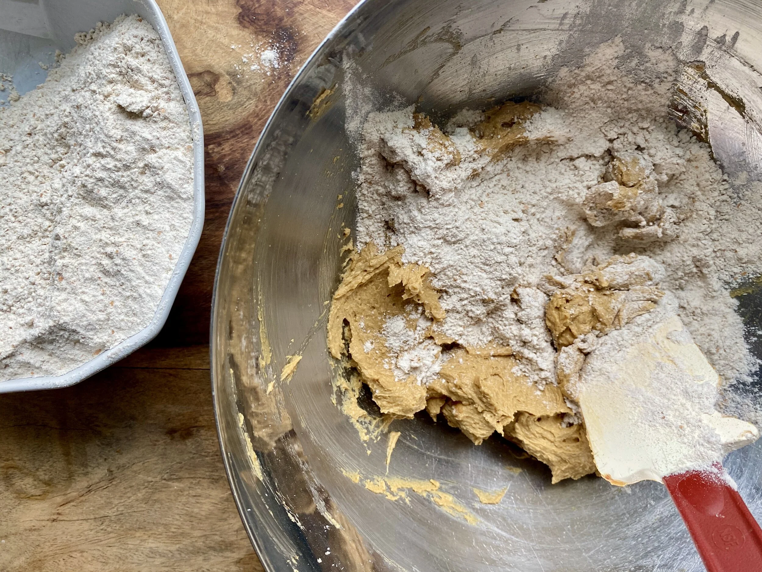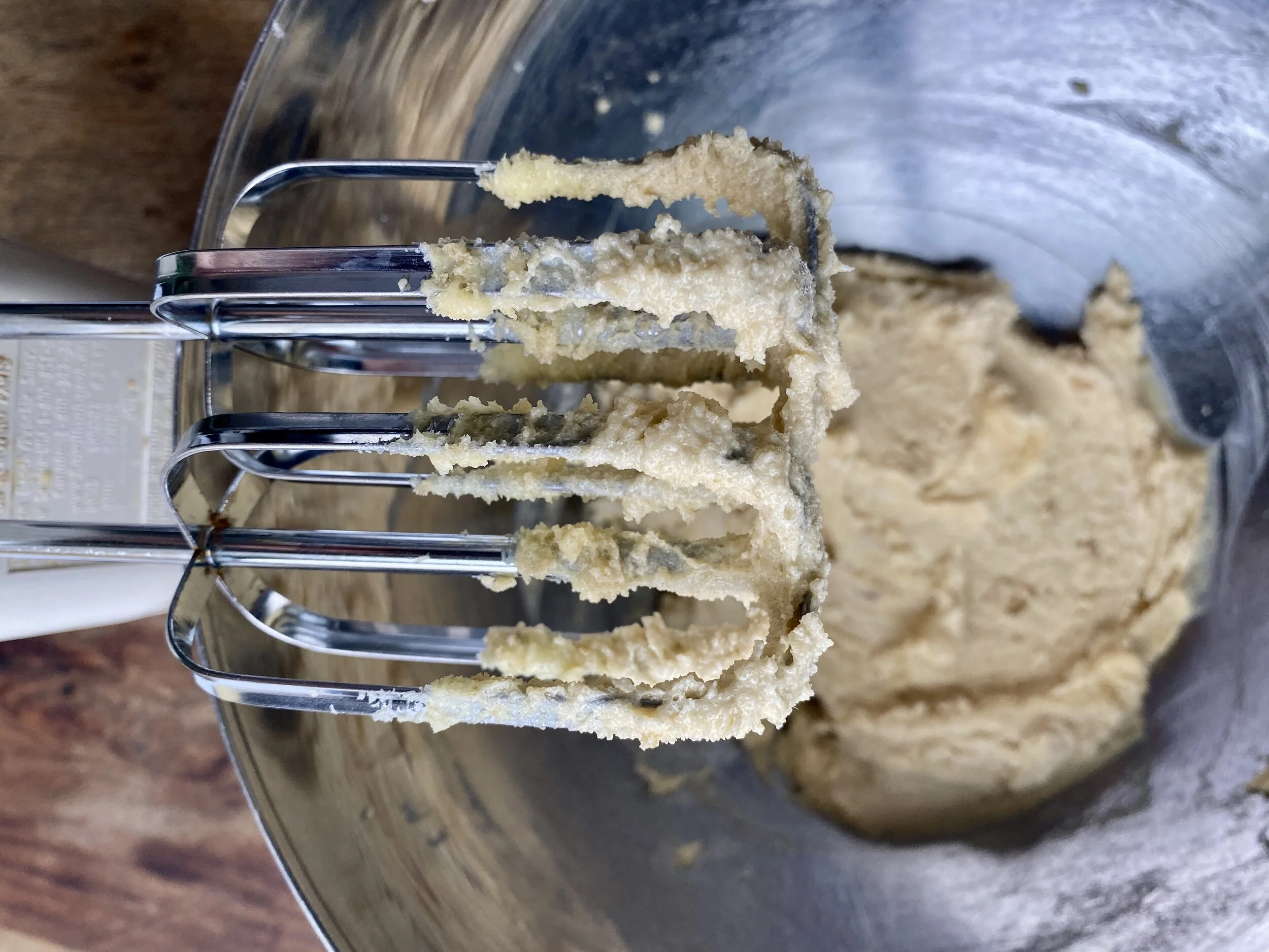 2. In a large bowl, with a hand mixer (what I use) or a stand mixer fitted with a paddle attachment, cream together the soft butter and sugars for a few minutes until light, fluffy and pale yellow. You’ll occasionally need to scrape down the side with a spatula to get the batter clinging to the side. Blend in the egg, and then blend in the molasses until each is combined.
