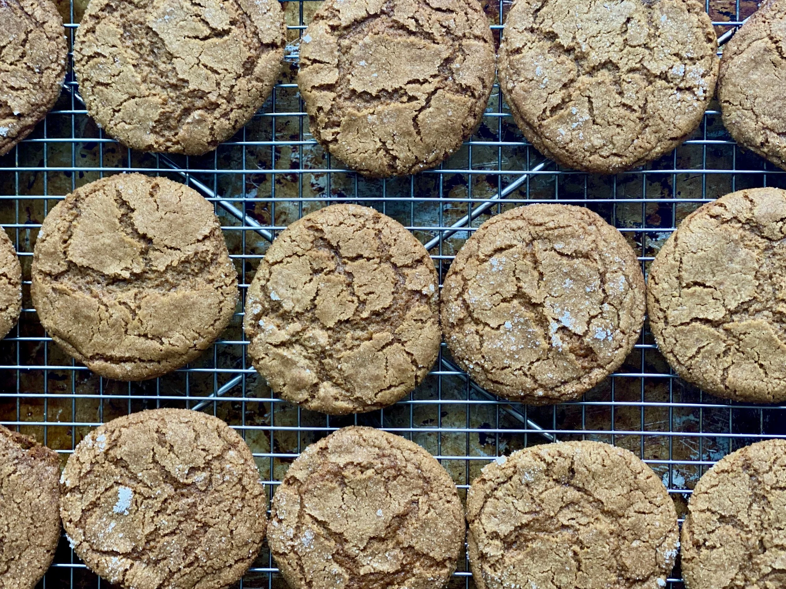 Typical molasses cookies call for regular all-purpose flour (and they are delicious) but I tried a version cutting mine with spelt and I haven’t looked back. For texture, I suppose you could bake them longer until they go crunchy, but I like mine this way. Chewy and caramel-y on the outside and soft on the inside. It’s not necessary but I’ll even take them out a few times toward the last few minutes and give the tray a whack on the counter to big up the crinkles even more, as you would with the chocolate chip crinkle cookies.