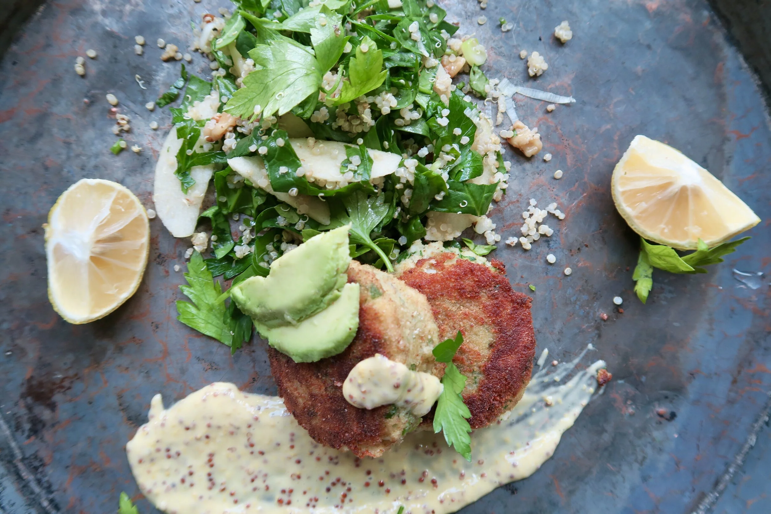 A couple weeks ago we posted a Cod & Potato Cake recipe that we paired with this quick quinoa, apple, and parsley salad. We threw a bunch more parsley in then since we wanted a brighter and crisp flavor next to the cod and potato but you can customize the ratio of ingredients however you wish. This can be eaten on its own, as a side dish or even on top a bed of spinach or your favorite greens to bulk it up a bit.